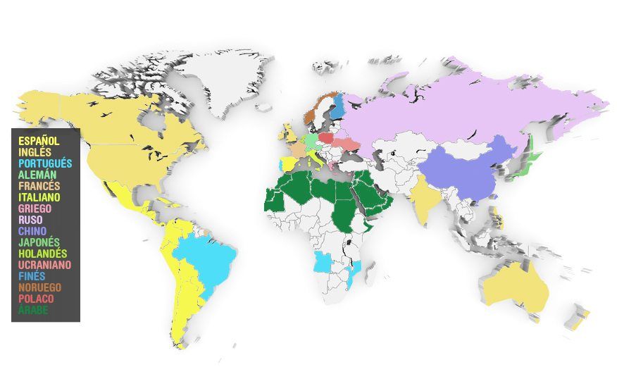 ESPAÑOL · INGLÉS · PORTUGUÉS · ALEMÁN · FRANCÉS · ITALIANO · GRIEGO · RUSO · CHINO · JAPONÉS · HOLANDÉS · UCRANIANO · FINÉS · NORUEGO · POLACO · ÁRABE